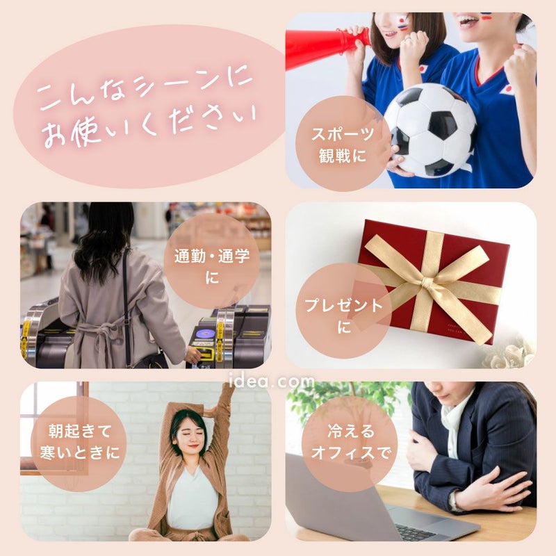 | 目的 | 冷え対策 冬の外出対策 手の冷え防止 指先の保温 通勤通学の防寒 オフィス冷え対策 冷え性改善 エコカイロ代替 旅行のお供 屋外イベント用 キャンプ 防寒ギフト 女性への贈り物 クリスマスプレゼント 職場用カイロ 自宅リラックス用 手袋代わり 電車内対策 ポケット用温感アイテム ハンドウォーマー代 |