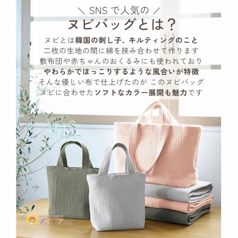 | やわらかでほっこりする風合い いつも持ち歩きたくなるヌビバッグ nubi トートバッグ ![]() ![]() ![]() ![]() ![]() ![]() ![]() ![]() ![]() ![]() ![]() ![]() ![]() ![]() ![]() ヌビとは韓国の刺し子、 キルティングのこと。二枚の生地の間に綿を挟み合わせて作ります。敷布団や赤ちゃんのおくるみにも使われており、やわらかでほっこりするような風合いが特徴。そんな優しい布で仕上げたのが このヌビバッグ。ヌビに合わせたソフトなカラー展開も魅力です。 ![]() |