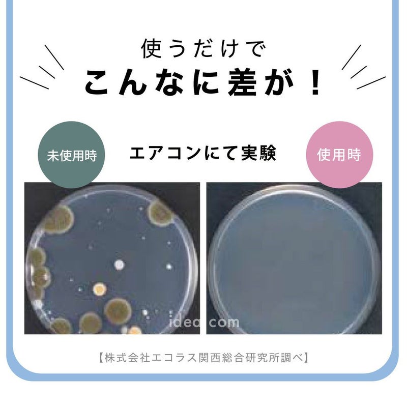 エアコンの吸気口に取り付けるだけでOK。バイオがカビや悪臭の原因となる物質を抑え、発生を大幅に減少させます。使うたびにきれいな空気が広がり、室内を快適に。手軽にエアコンのメンテナンスができる優れモノ。