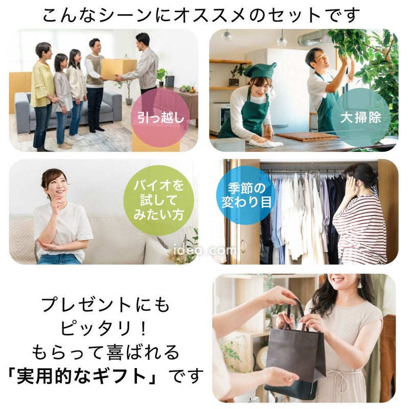 引っ越しや大掃除、季節の変わり目など、お家を丸ごときれいにしたいタイミングに最適な「パワーバイオの1軒分おまとめセット」。これからバイオを試してみたい方にもおすすめです。防カビ&消臭アイテムが揃っているから、まとめて手軽に始められるお得なセットとして、暮らしを快適にサポートします。