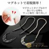 | ■使用上のご注意 | ●磁石の力による脱着ですので、強い力がかかると外れる事があります。●ネックレスを外す際は、アクセサリーパーツをお持ちになると破損の原因になりますので、マグネット部をお持ちになり取り外してください。●無理な力がかかった場合は変形、破損する場合がありますので、お取り扱いには十分ご注意ください。●ペースメーカーなど、医療用電子機器をお使いの方は使用しないでください。●体質によってかゆみ、かぶれを生じる場合があります。●皮膚に異常を感じた場合は専門医にご相談ください。●本品を落としたり傷をつけたりすると、メッキがはがれたり、サビの発生の原因となるおそれがあります。●高温な場所、または極寒な場所でのご使用は、火傷や凍傷になる場合がありますのでご注意ください。●保管する際は、小さなお子さまの手の届かない場所に置いてください。●商品の特性上、色や模様には個体差があります。●火気に近づけないでください。●本来の用途以外には使用しないでください。 | ||