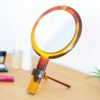 置き鏡として部屋に置いておいても、べっ甲風のおしゃれなデザインなのでインテリアにも馴染みます。 |