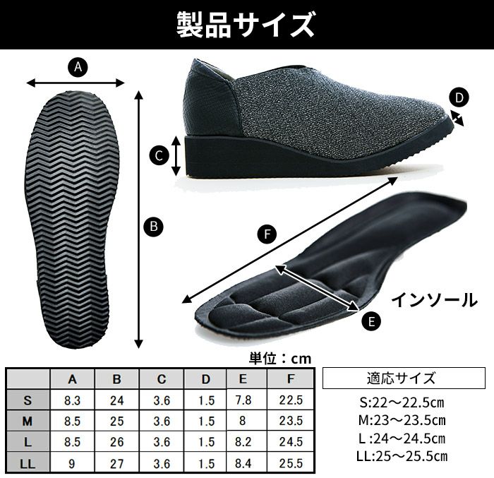 | ■適応サイズ(約) | S:22~22.5cm、M: 23~23.5cm、L:24~24.5cm、LL:25~25.5cm | ||