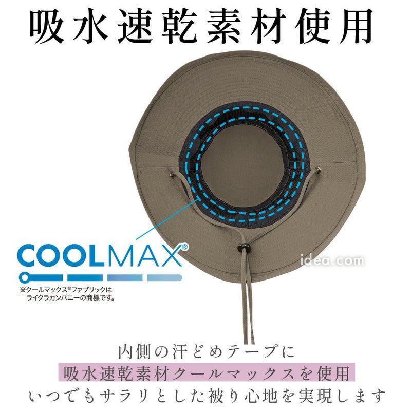 内側には通気性に配慮した仕様を採用し、ムレにくく長時間の着用でも快適。さらに吸水速乾素材により、汗ばむ季節でもさらりとしたかぶり心地をキープします。サイズ調整機能付きでフィット感を高め、風のある日やアクティブなシーンでも安心して着用できます。