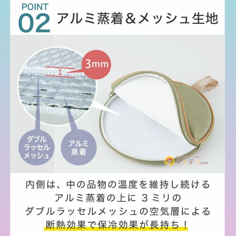 | ■材質 | 本体:〈表生地〉ポリエステル 〈内生地〉アルミ蒸着フィルム 保冷剤:水、CMC-Na | ||