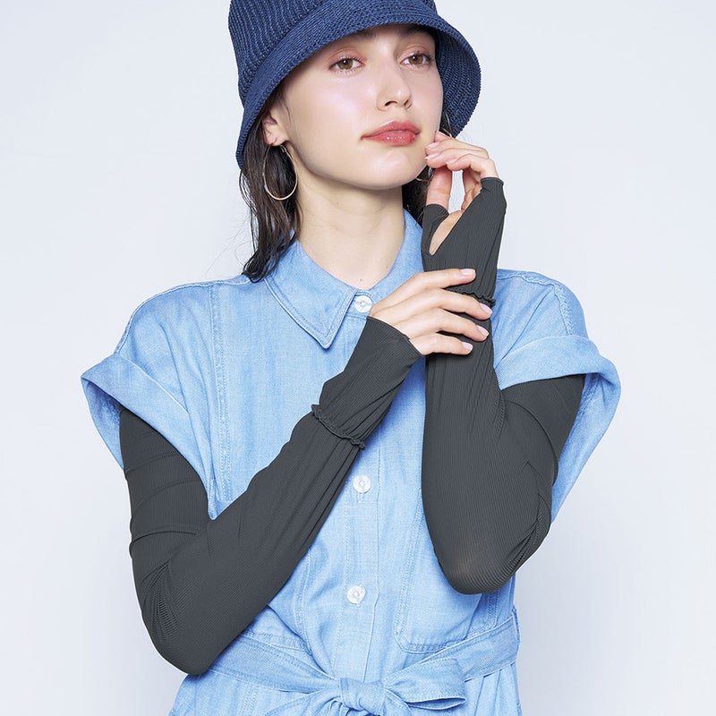 | 手の甲までしっかりカバー!重ね着風のアームカバー サンブロックラボビューティー リブレイヤードアームカバー ![]() すぐに購入したい方はこちら ![]() ![]() ![]() ![]() ![]() ![]() ![]() 重ね着風でおしゃれにUV対策。手元まで美しく 日差しが強くなる季節、腕だけでなく手の甲までしっかり守りながら、コーディネートも妥協したくない方へ。「サンブロックラボビューティー リブレイヤードアームカバー」は、重ね着風デザインで自然にスタイルに馴染む、機能性とファッション性を兼ね備えたアームカバーです。 腕から手の甲までを覆うロング設計で、日焼けしやすい部分を広範囲にカバー。紫外線対策はもちろん、近赤外線にも配慮した素材を使用し、肌への負担を軽減します。薄手で軽やかな生地感のため、長時間着用しても蒸れにくく、快適な着け心地が続きます。 リブ素材を活かしたレイヤード風デザインは、シンプルな装いのアクセントとしても活躍。アームカバー特有のスポーティーさを抑え、外出時や通勤時にも取り入れやすい仕上がりです。袖口にはゴムを施し、ずれにくくフィット感のある着用感を実現しました。 コンパクトにたためるためバッグインしやすく、外出先での紫外線対策にも便利。自転車移動や散歩、ショッピング、レジャーなど、日常のさまざまなシーンで活躍します。日焼け止めの塗り直しが難しい手元のケアにも適しており、美肌を意識する大人女性におすすめのアイテムです。実用性とデザイン性を両立した、毎日使いたくなるUVケアアイテムとして取り入れてみてはいかがでしょうか。 |