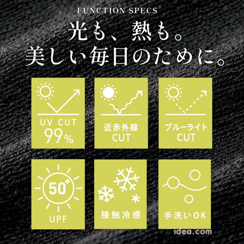 | 機能性 | UVカット 近赤外線カット 接触冷感 紫外線対策 軽量素材 通気性 快適着用 リブ袖設計 フィット感 短丈デザイン 動きやすい 長時間着用OK 手洗い可能 夏用設計 日差し対策 |