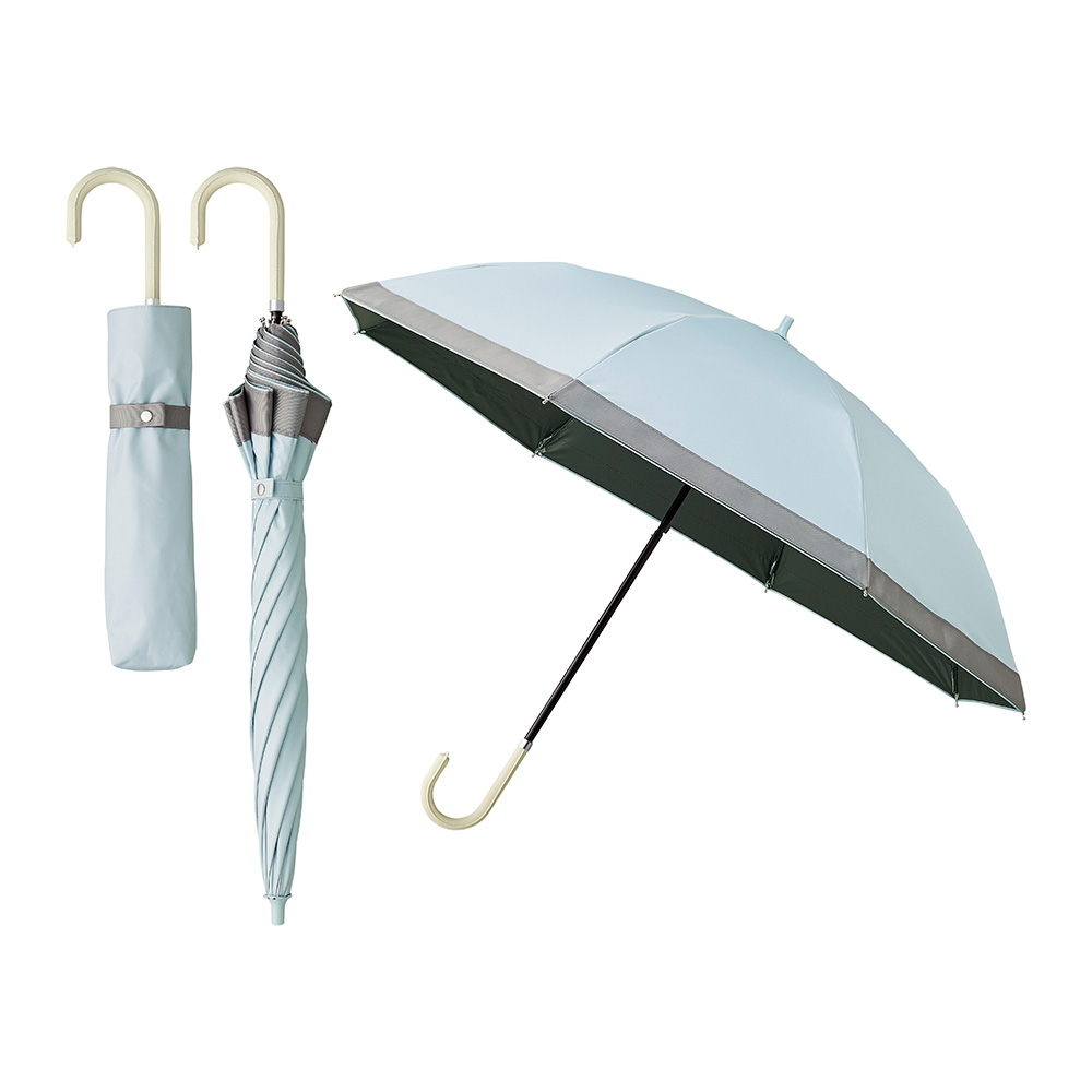 突然の雨にも対応したい場合は、晴雨兼用の日傘が便利です。紫外線対策と雨対策を1本で兼ねられるため、 通勤や旅行など荷物を減らしたい場面でも活躍します。
