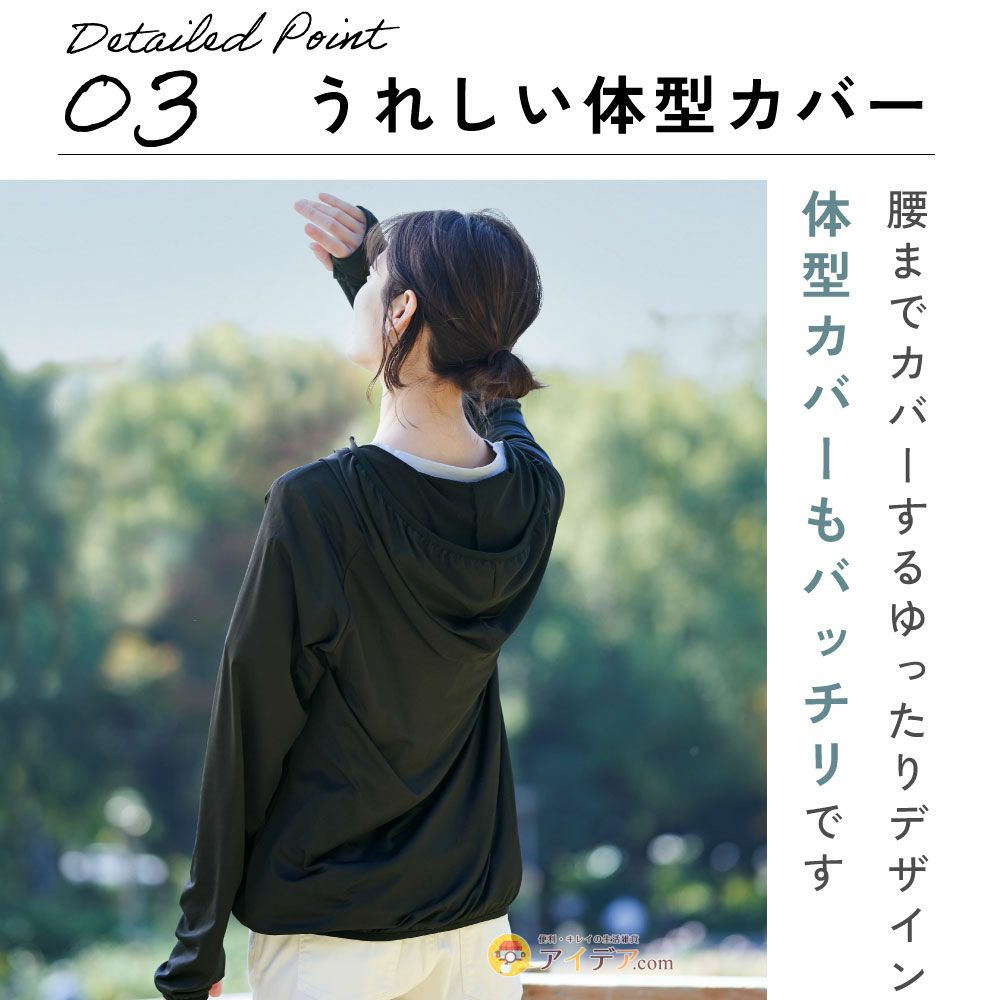 また、ゆったりシルエットならトレンド感があり、体型カバーに最適。顔が隠れるパーカーも紫外線をしっかりカットできて便利です。通気性が良く、軽くて持ち運びしやすい素材を選べば、夏の冷房対策やアウトドアにも大活躍!