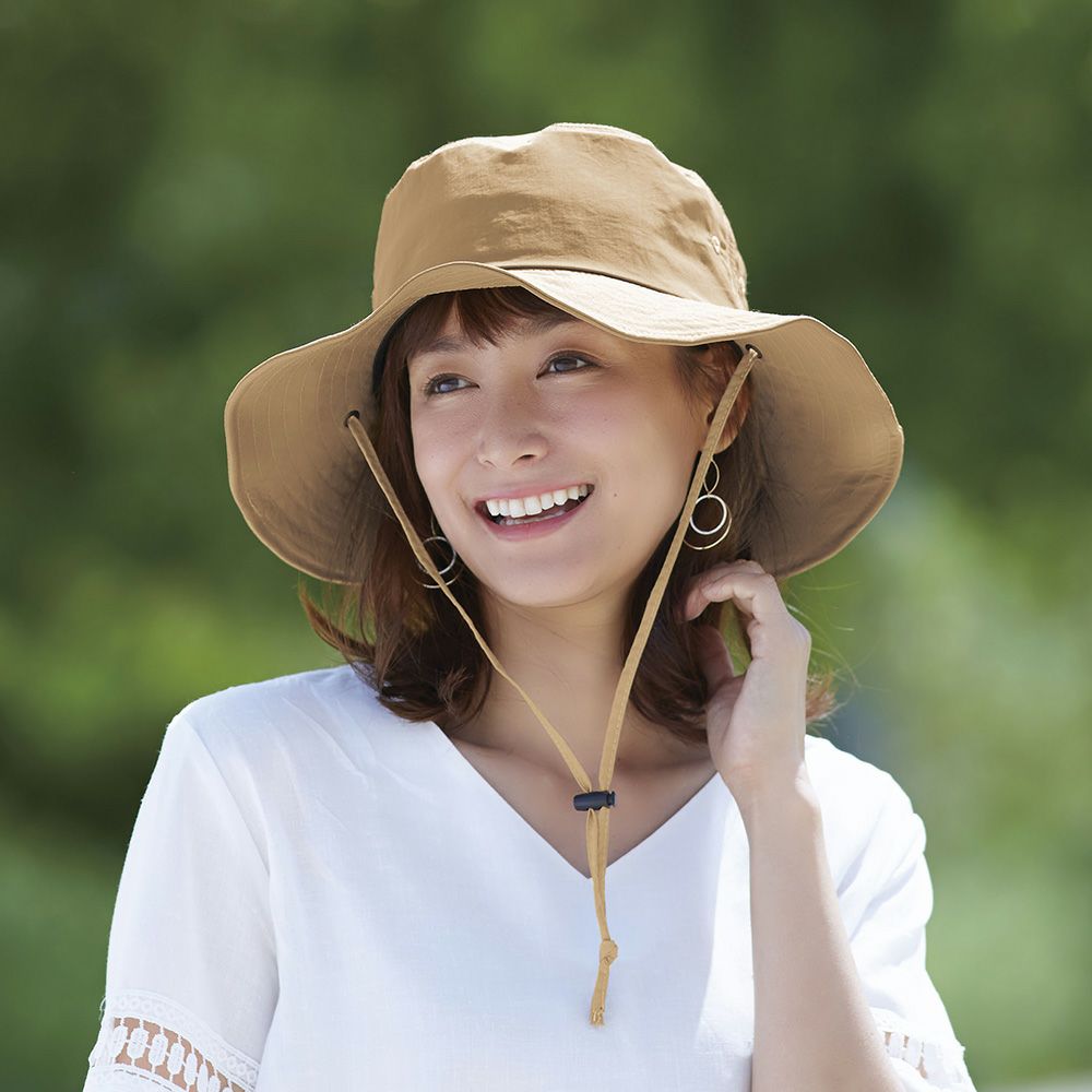 あご紐付きだから飛びにくい、はっ水加工で急な雨も安心!紫外線カット率約99%